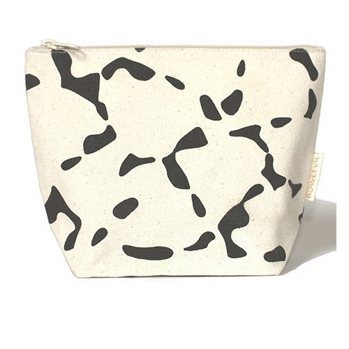 Deze geweldige toilettas met een print van artistieke bladeren is gemaakt van (GOTS gecertificeerd) biologisch canvas. De rits is heel stevig net als  de toilettas zelf en gaat lang mee.