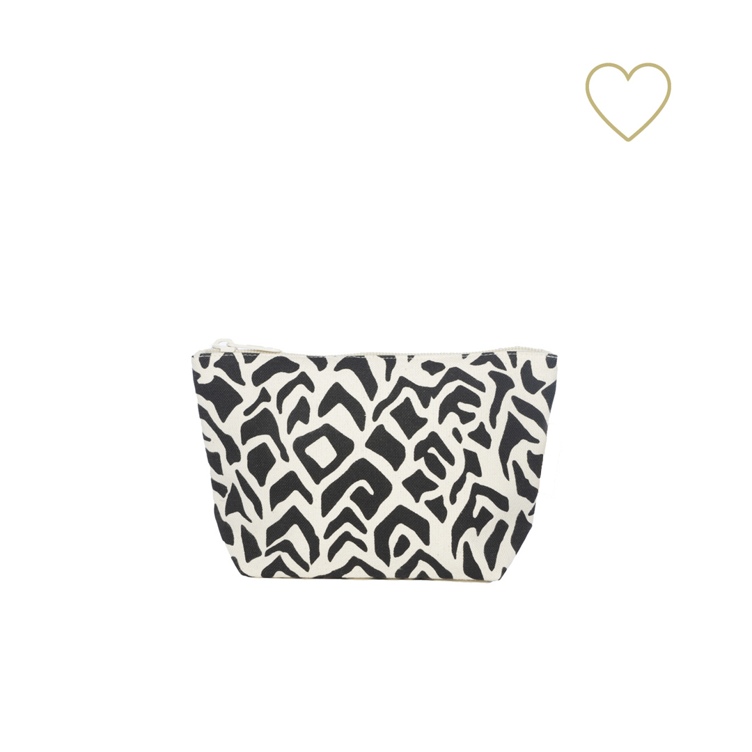 Dit leuke make-up tasje heeft een mooie zwart-wit print  en is gemaakt van heel sterk materiaal, namelijk van biokatoenen canvas. Al jouw make-up items passen hier fijn in.