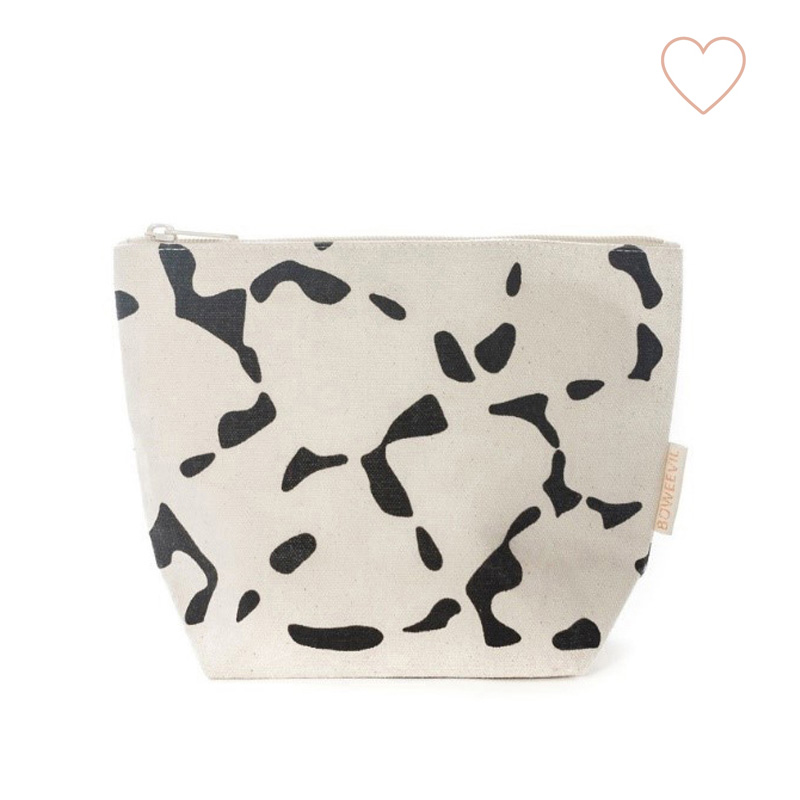 Deze geweldige toilettas met een print van artistieke bladeren is gemaakt van (GOTS gecertificeerd) biologisch canvas. De rits is heel stevig net als de toilettas zelf en gaat lang mee.